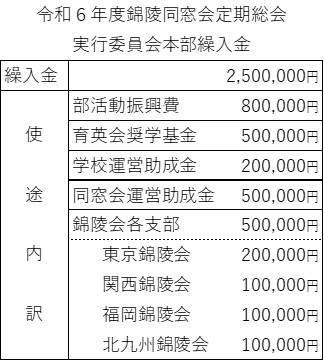 令和6年度定期総会実行委員会より250万円の寄付を受けました。内訳は下記のとおりです。